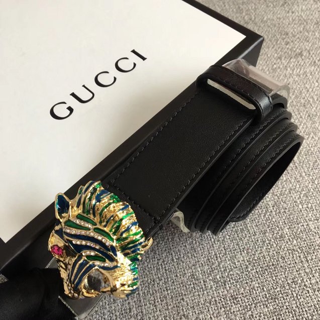 GG original calfskin belt with tiger head 30mm 543152 black