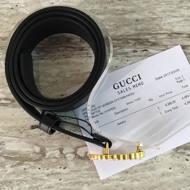 GG original calfskin pearl buckle belt 35mm 225530 black