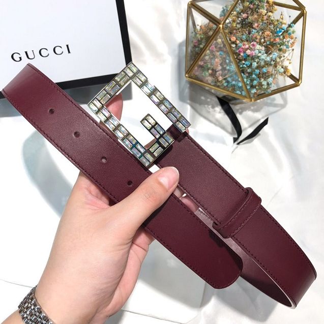 GG original calfskin square G buckle 35mm belt 550106 bordeaux