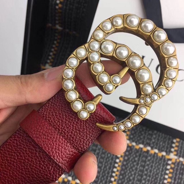 GG original grained calfskin pearl buckle belt 38mm 453260 bordeaux