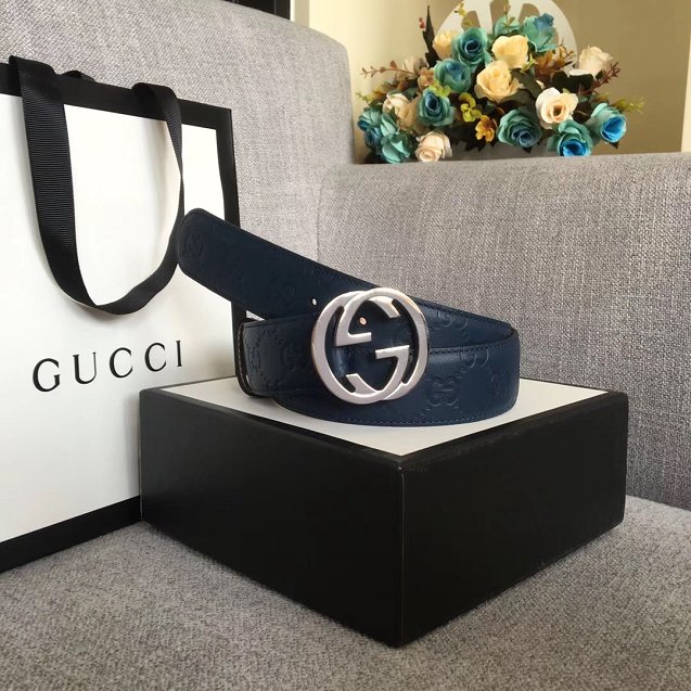 GG original signature calfskin belt 38mm 370543 navy blue