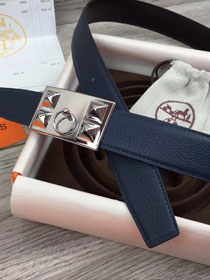 Hermes orignal epsom leather H reversible belt 32mm H073926 dark blue