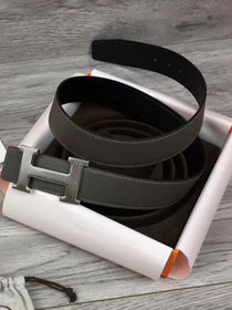 Hermes orignal epsom leather H reversible belt 32mm H073927 grey