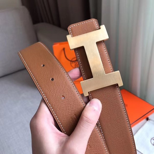 Hermes original epsom leather Constance 2 belt 42mm H064547 coffee