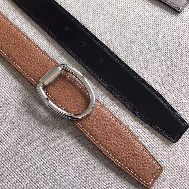 Hermes original togo leather mors reversible belt 32mm H070163 coffee