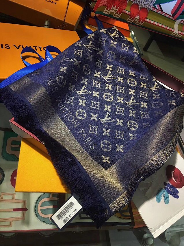 2020 louis vuitton top quality silk scarf L568 navy blue