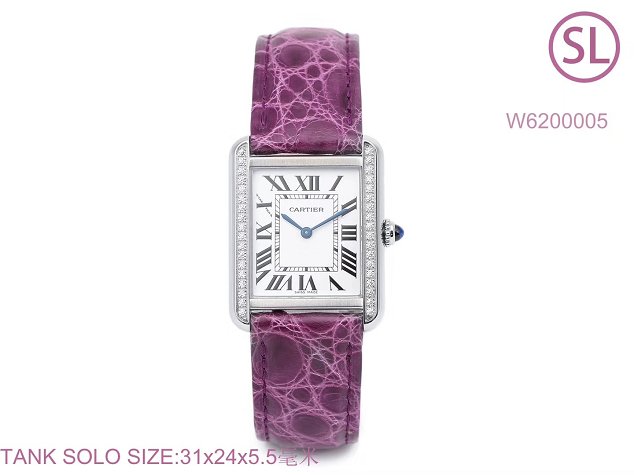 Cartier tank quartz diamond watch small crocodile leather W6200005 purple