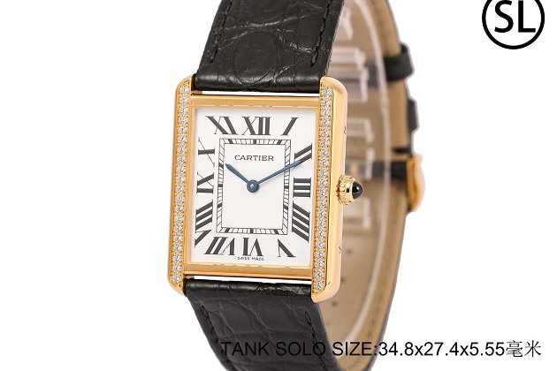 Cartier tank quartz watch diamond medium crocodile leather WA520301 black